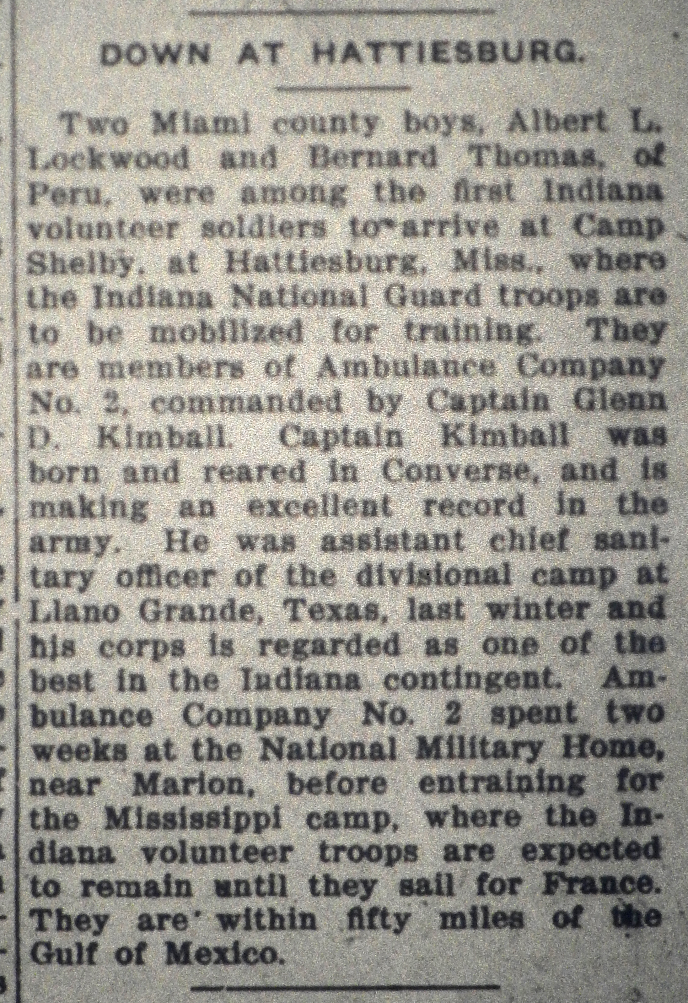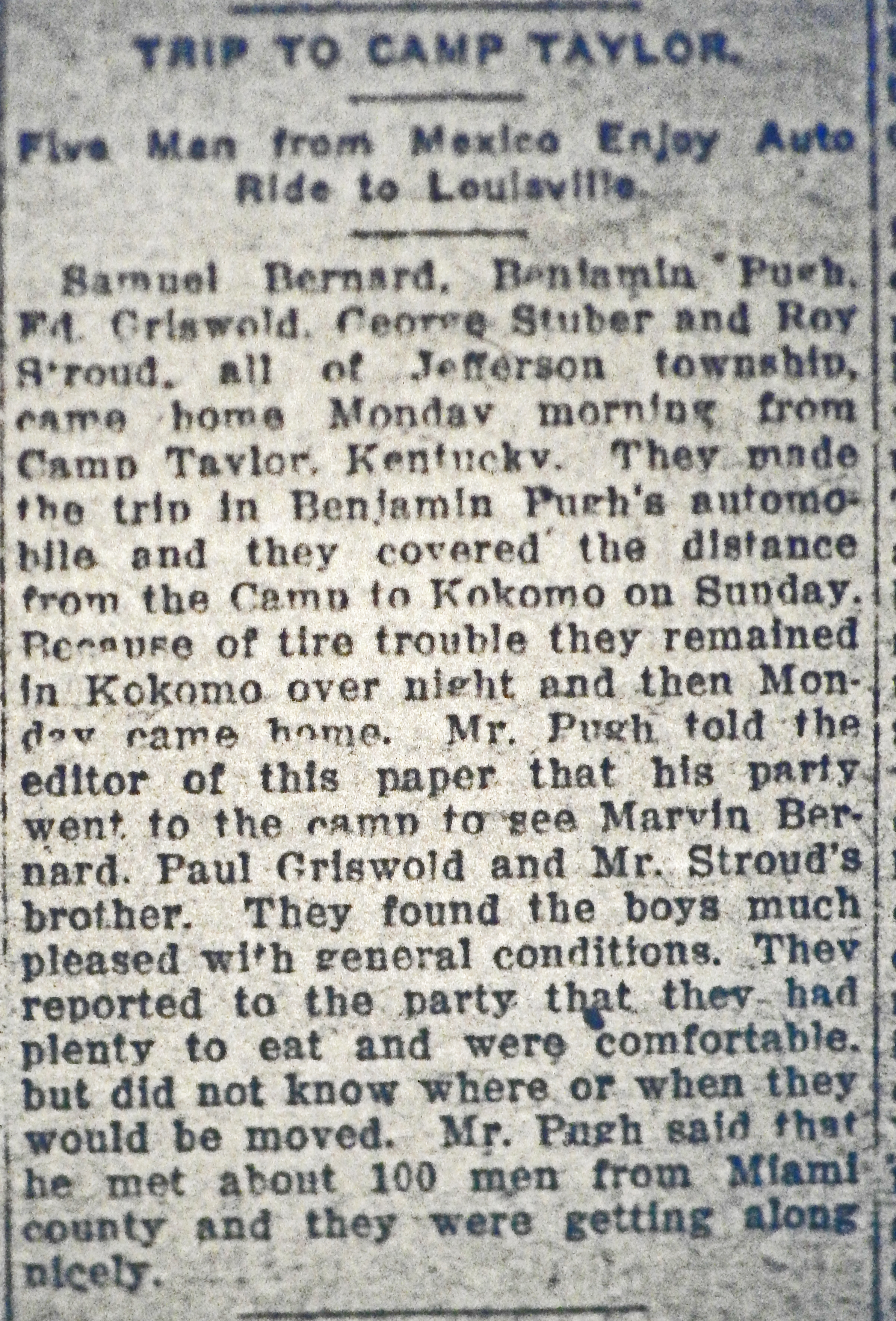 | More Loyal men go from this County | Selected | ANDERSON, Ernest E | Camp Taylor, KY | Peru, IN | October | 5 | 1917 | image |