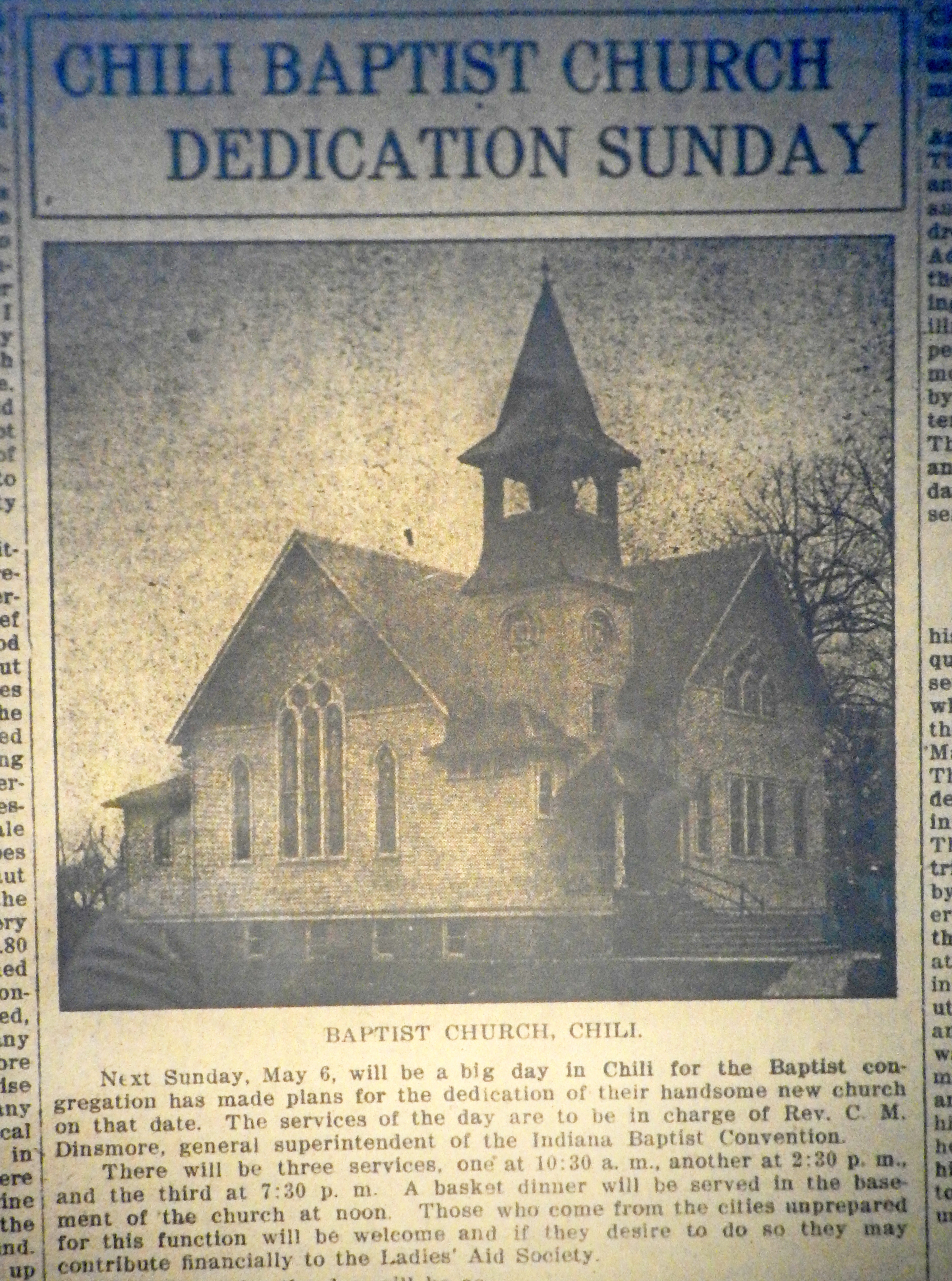 | Chili Baptist Church Dedication Sunday | Church: dedication | | | | May | 4 | 1917 | image |