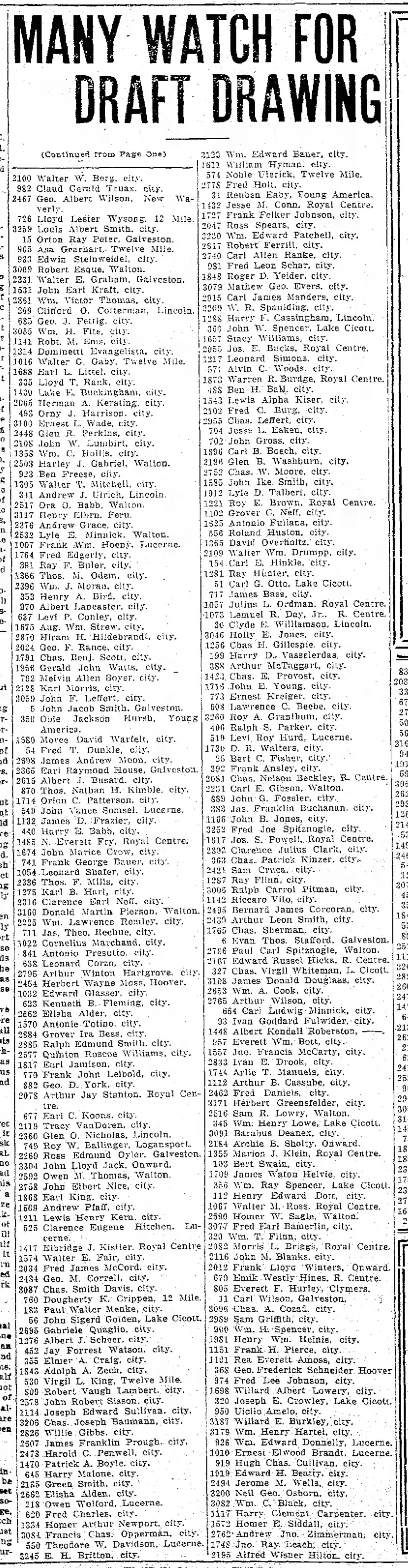 | Many Watched For Draft Drawings | | ELBURN, Henry | Peru | | Draft# 3117 | July | 20 | 1917 | Logansport Pharos Reporter | Image |