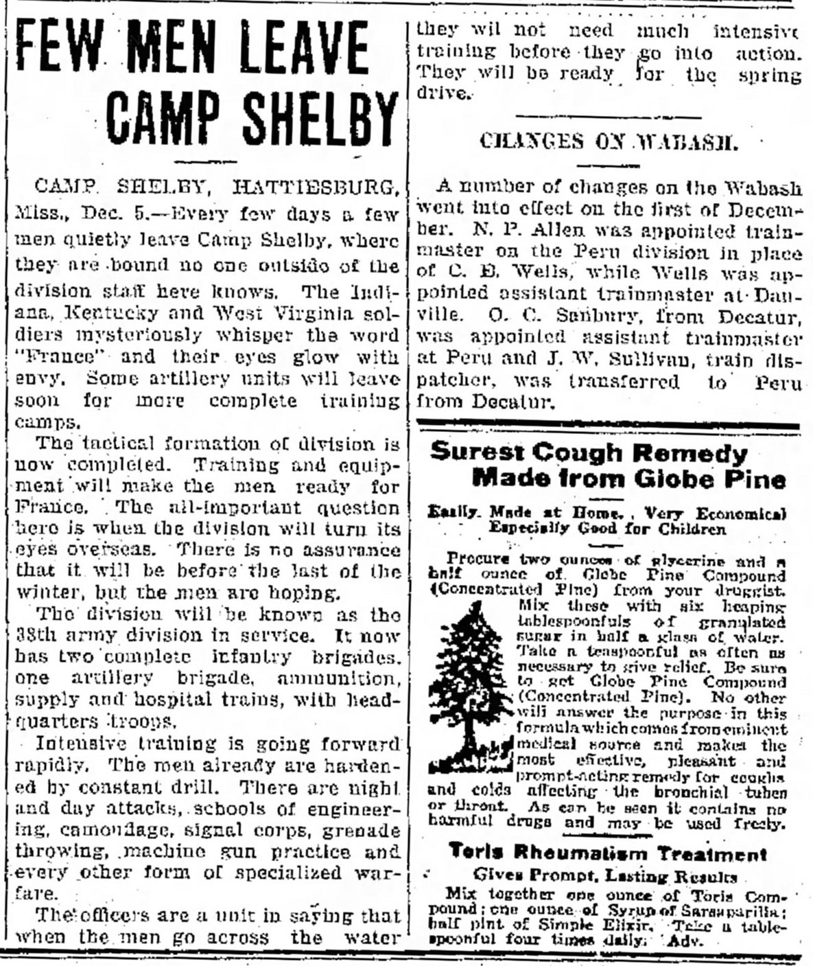 | Few Men Leave Camp Shelby | | | | | | December | 5 | 1917 | Logansport Pharos Reporter | Image |